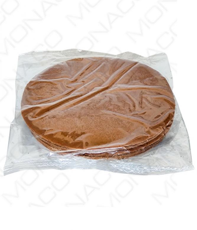Hotové pečené kakaové pláty o prům.24cm, připravené k výrobě třívrstvého dortu, výška 3 plátů je 3,9 cm a váží 351g.