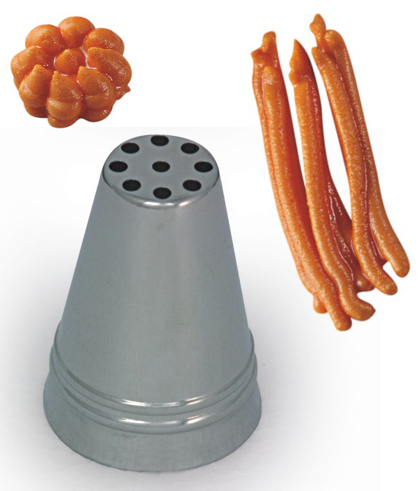 Cukrářská trezírovací špička z pevné nerezové oceli. Je vhodná jak do klasických trezírovacích sáčků, tak i do jednorázových.