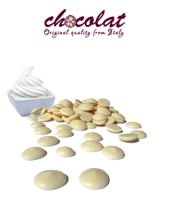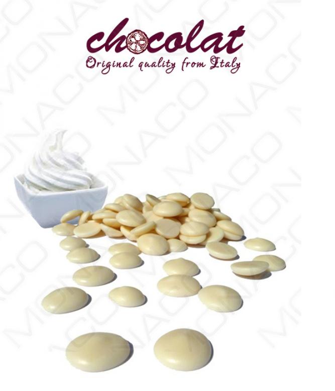 Exkluzívní vysoce kvalitní bílá čokoláda se zvýšeným podílem kakaového másla (30%) a s přidanou 75% smetanou.
