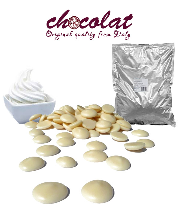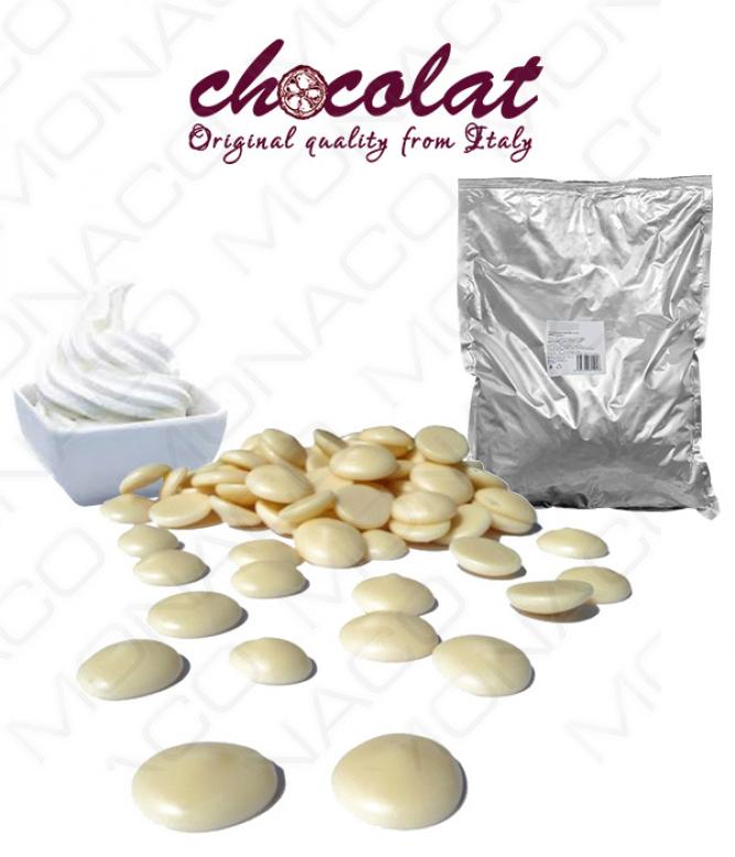 Exkluzívní vysoce kvalitní bílá čokoláda se zvýšeným podílem kakaového másla (30%) a s přidanou 75% smetanou.