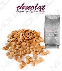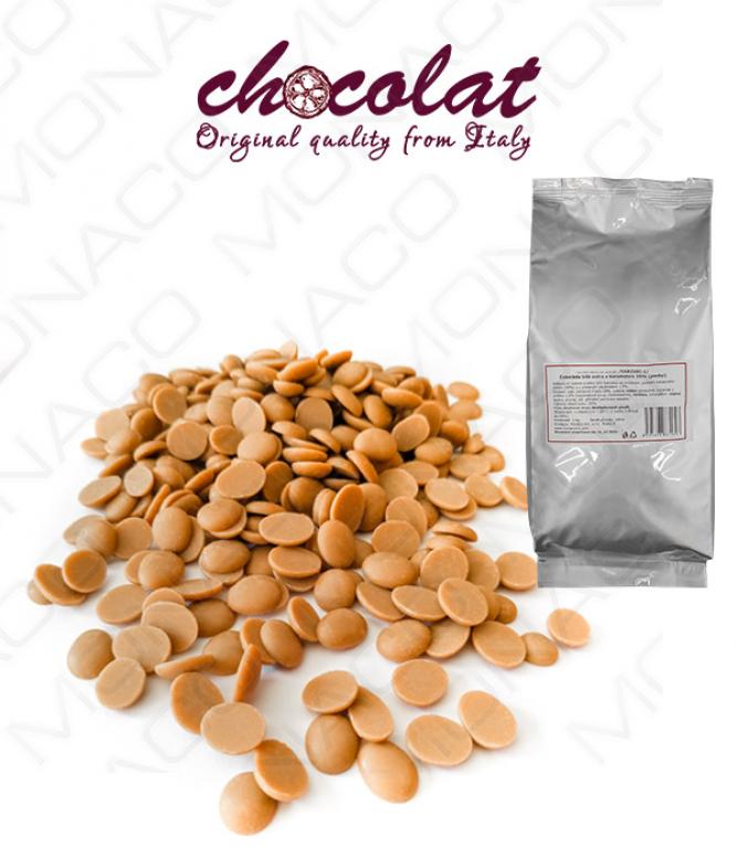 Exkluzívní vysoce kvalitní bílá čokoláda se zvýšeným podílem kakaového másla (30%) a s přidaným karamelem 1,5%.