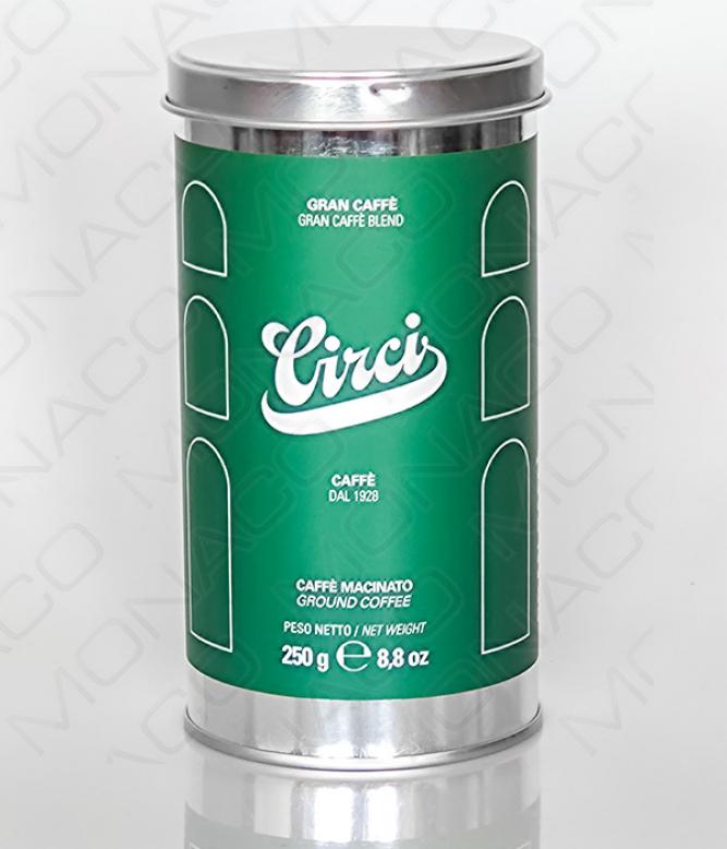 Mletá káva Grancaffé z římské pražírny Circi, směs z výběrových zrn arabiky a robusty velmi pomalu pražená a