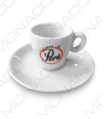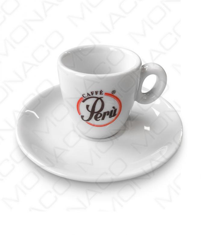 Profesionální italské šálky z dvojitého porcelánu s logem kávy Caffé Peru.