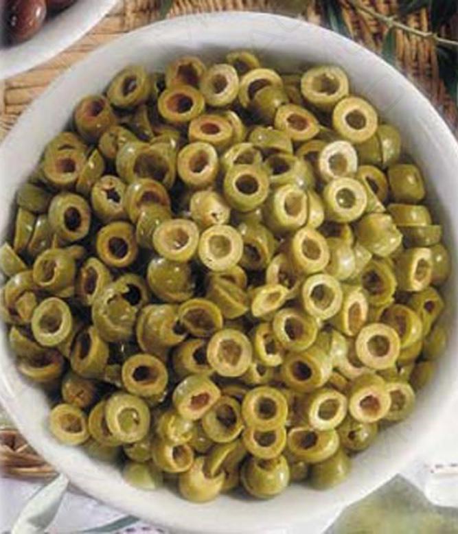 Vypeckované a na plátky nakrájené černé olivy naložené v mírně slaném nálevu.