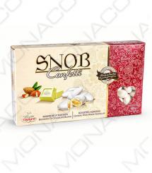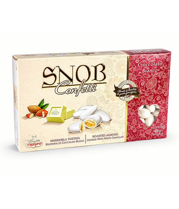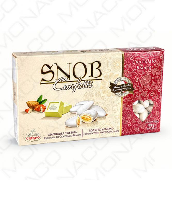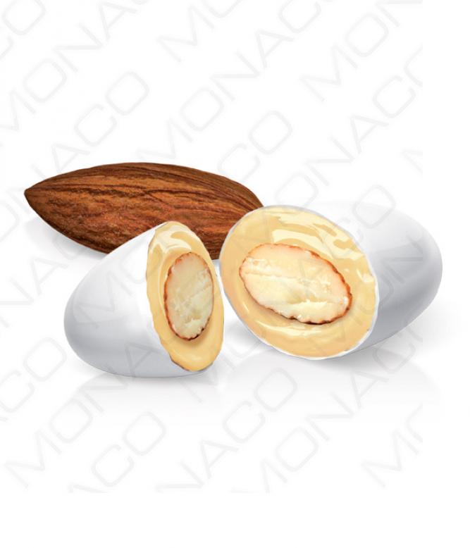 Svatební mandle, pražené a obalené v pravé čokoládě a jemné bílé cukrové polevě.