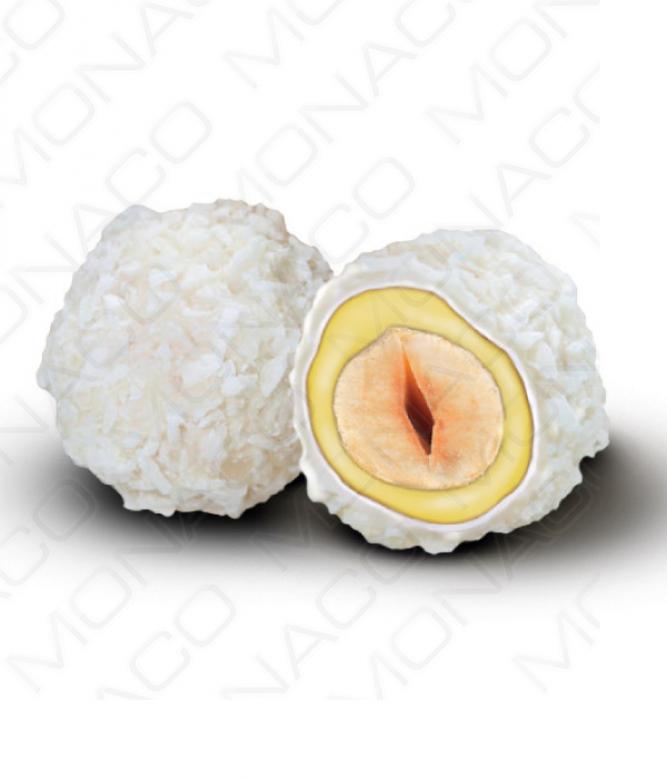 Složení: Bílá čokoláda (74%) (cukr, kakaové máslo, sušené MLÉKO, sušená SYROVÁTKA, emulgátor: SÓJOVÝ lecitin, aroma: vanilin); pražené LÍSKOVÉ OŘECHY (20%); kokosová drť (6%) (kokos, OXID SIŘIČITÝ).