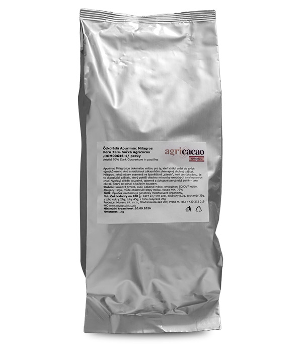 Čokoláda Agricacao Apurimac Milagros Peru 73% hořká, pecky 1 kg/sáček alu