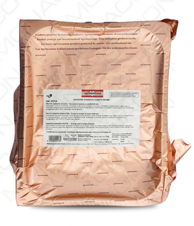 Kandovaná pomerančová kůra ručně loupaná z pečlivě vybraných a správně zralých pomerančů, vyrobená procesem pomalého a šetrného kandování. Agrimontana vyrábí pouze 100 % přírodní a profesionální produkty, proto tento výrobek neobsahuje žádná přidaná barviva a aromata.