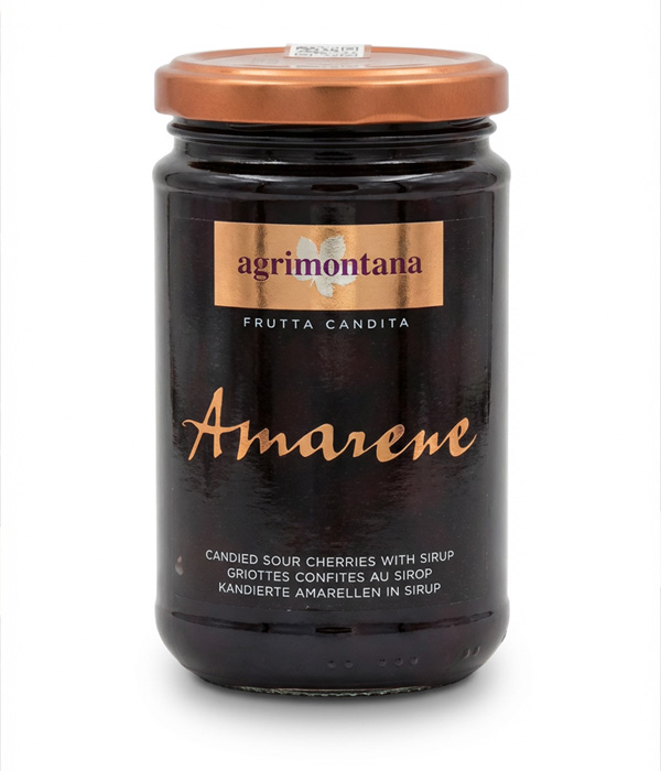Vypeckované, lehce kandované třešně Amarene celé Agrimontana naložené v sirupu. Tento druh třešní se vyznačuje jejich tmavě rudou barvou a výrazně aromatickou chutí. Agrimontana vyrábí pouze 100% přírodní a profesionální produkty, proto tento výrobek neobsahuje žádná přidaná barviva a aromata. Ideální do kynutých těst, zmrzliny a k dekoraci. Sirup je také možné použít k dochucení výrobků.
