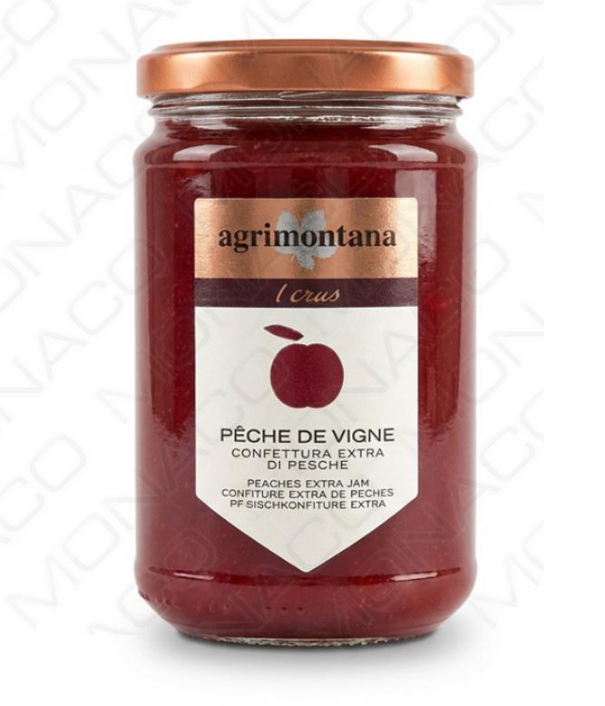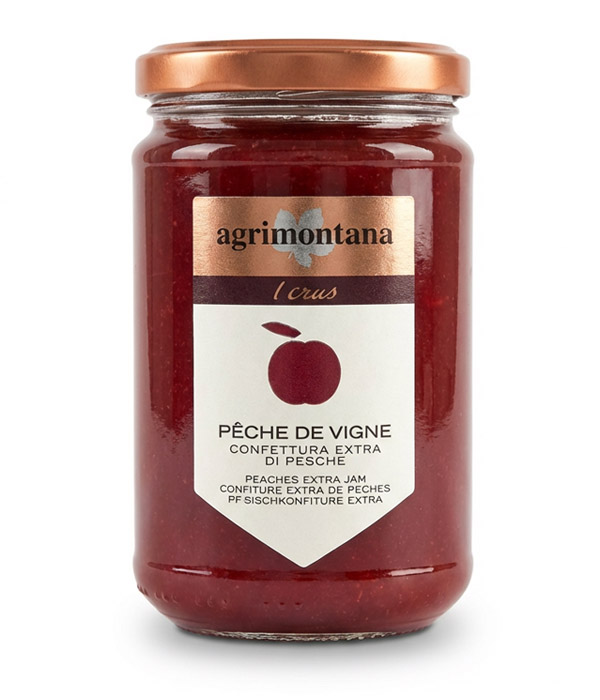 Složení: odrůda broskví Pêche des vignes, třtinový cukr, citronová šťáva, želírující látka: pektin. Vyrobeno z 73 g ovoce na 100 g výrobku.