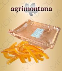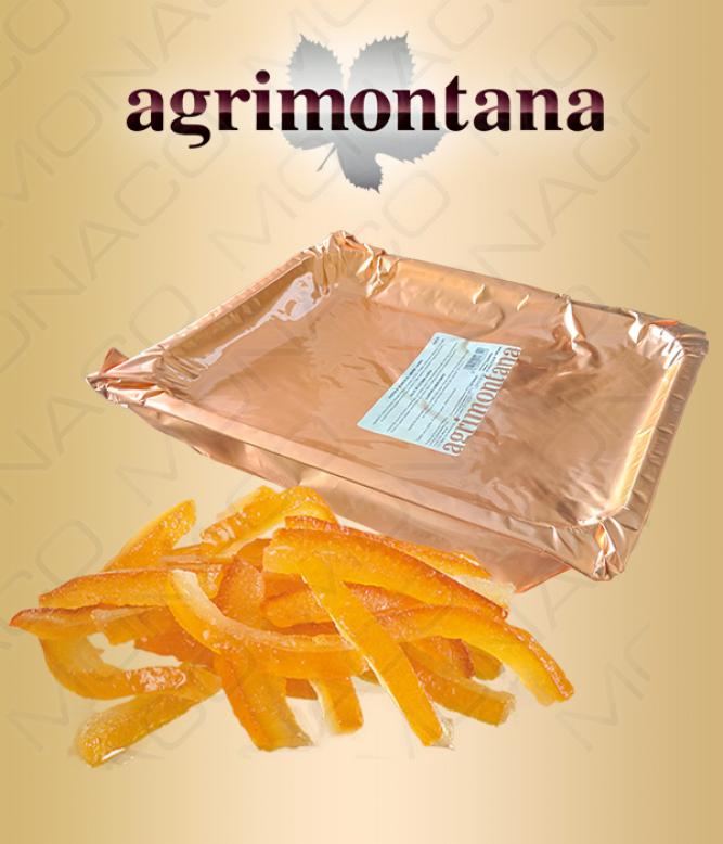 Zakřivené, ručně krájené řezy z kandované, pomerančové kůry. Je ručně loupaná z pečlivě vybraných pomerančů, zdravých a vyzrálých, vyrobená procesem pomalého kandování. Agrimontana vyrábí pouze 100% přírodní a profesionální produkty, proto tento výrobek neobsahuje žádná přidaná barviva a aromata.