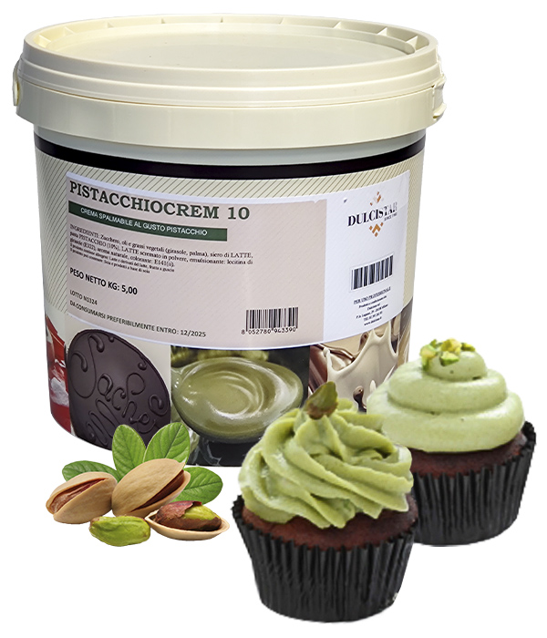 Snadno roztiratelný krém s pastou z italských pistácií (10%). Výrazně zelená pistáciová barva a lahodná chuť. Ideální jako naplň do dortů a pečiva, jako vafle, croissanty, koblihy a palačinky.