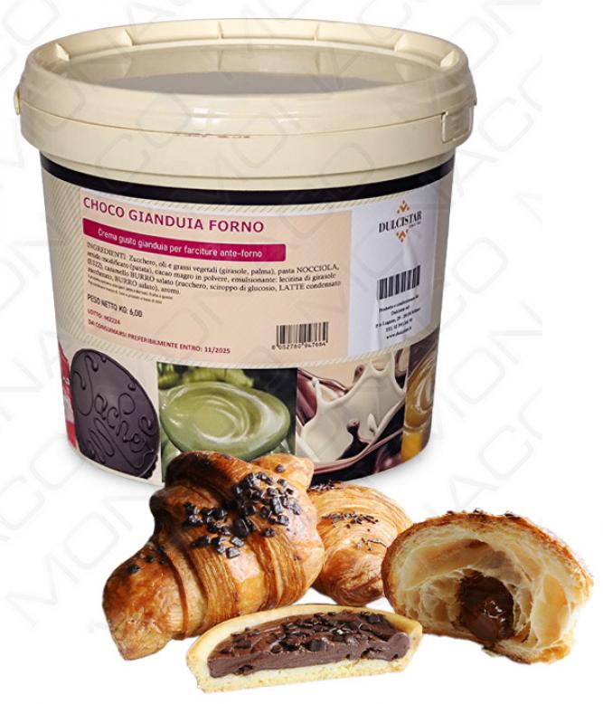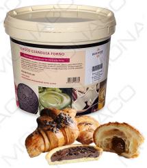 Nugátový termostabilní krém Gianduia (lískový oříšek s kakaem) na pečení. Ideální jako náplň do mřížkových koláčů, croissantů, a briošek. Použití jak za studena tak i za tepla. Hotové výrobky z tohoto krému je možné uchovávat při pokojové teplotě, nekazí se.