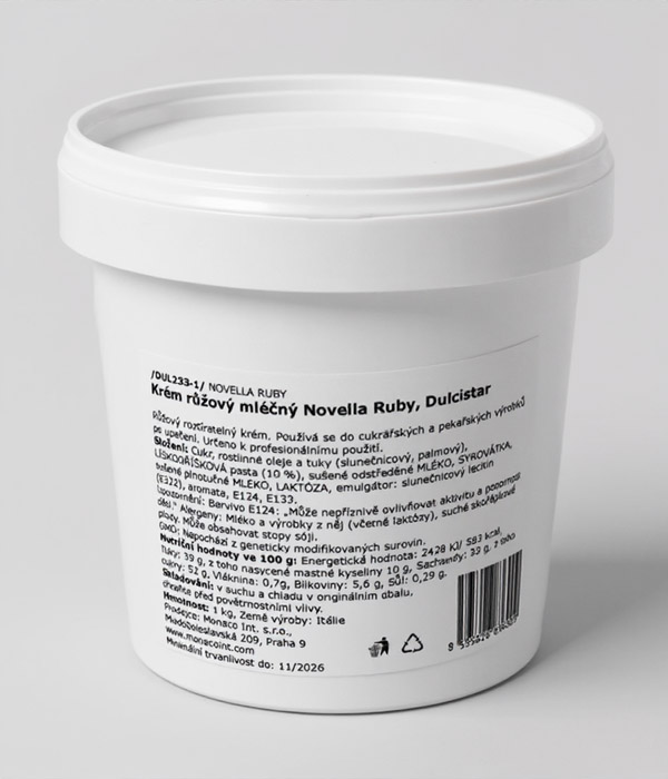 Růžový roztíratelný krém. Používá se k plnění cukrářských a pekařských výrobků po upečení. Určeno k profesionálnímu použití.
