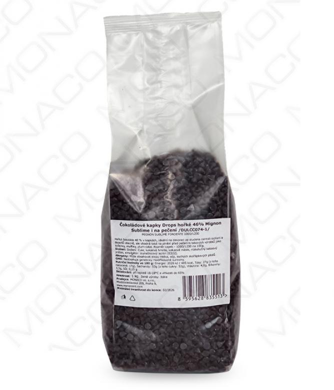 Hořká čokoláda 48 % v kapkách, ideální na dekoraci za studena, cannoli siciliani a dezertů obecně, ale vhodná také na plnění před pečením do takových výrobků jako sušenky, muffiny, plum-cake. Rozměr kapek - 1000/1200 na 100g.