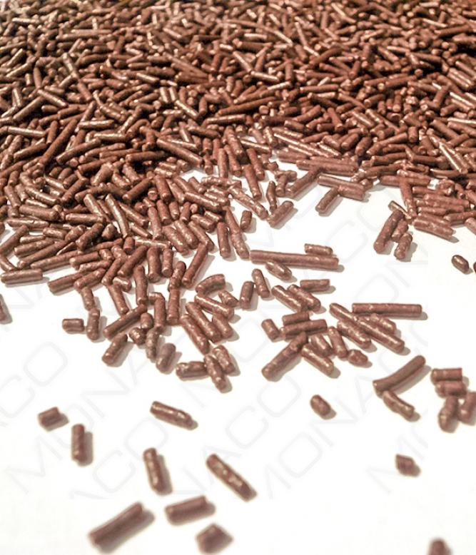 Tyčinky z kvalitní čokolády cca 5mm.Používají se především jako dekorace v cukrářské výrobě a jako přísady do zmrzlin.Složení: cukr, kakaové máslo, plnotučné mléko, kakao 22/24, sojový lecitin, aroma vanilin.