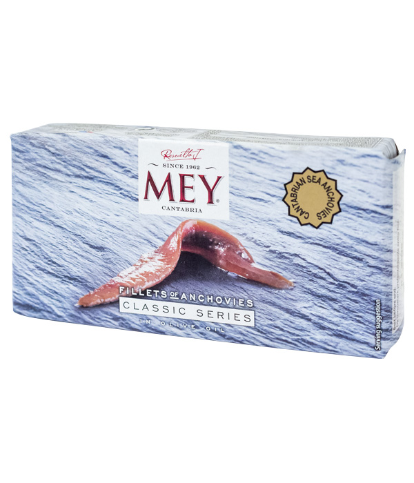 Čerstvé, vykostěné a naporcované ančovičky naložené v olivovém oleji. Původem ze Kantabrijského moře.
