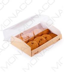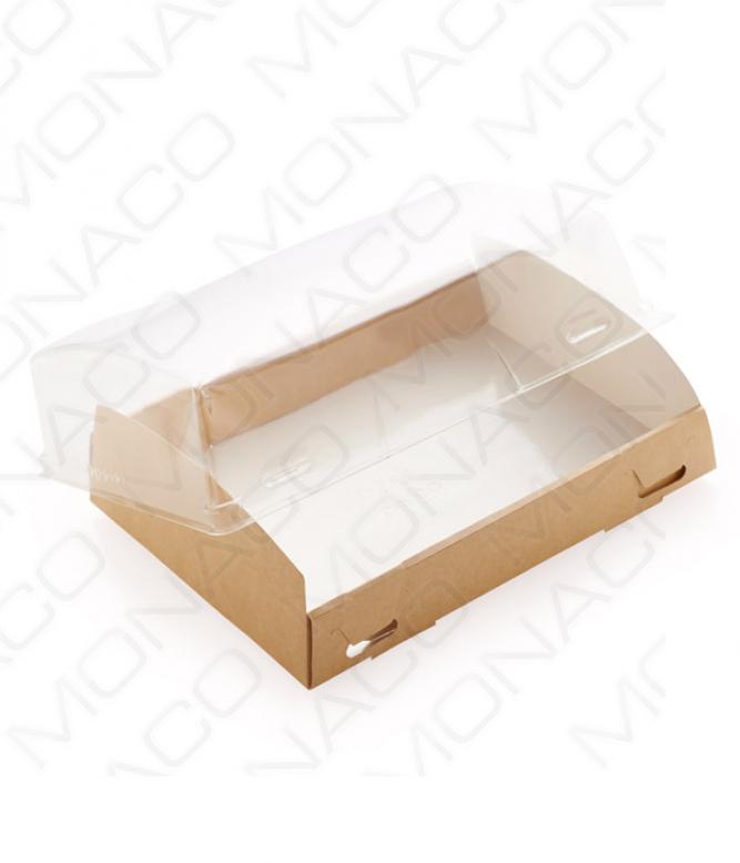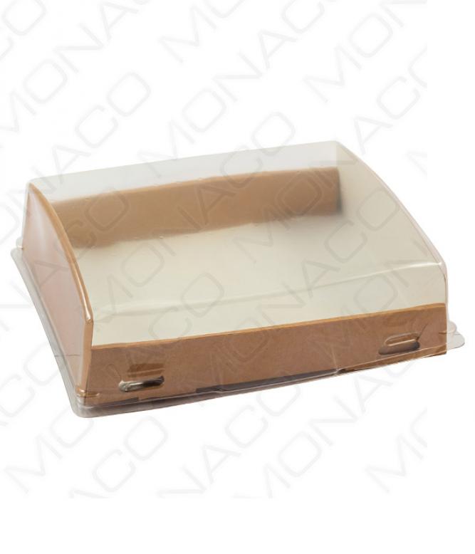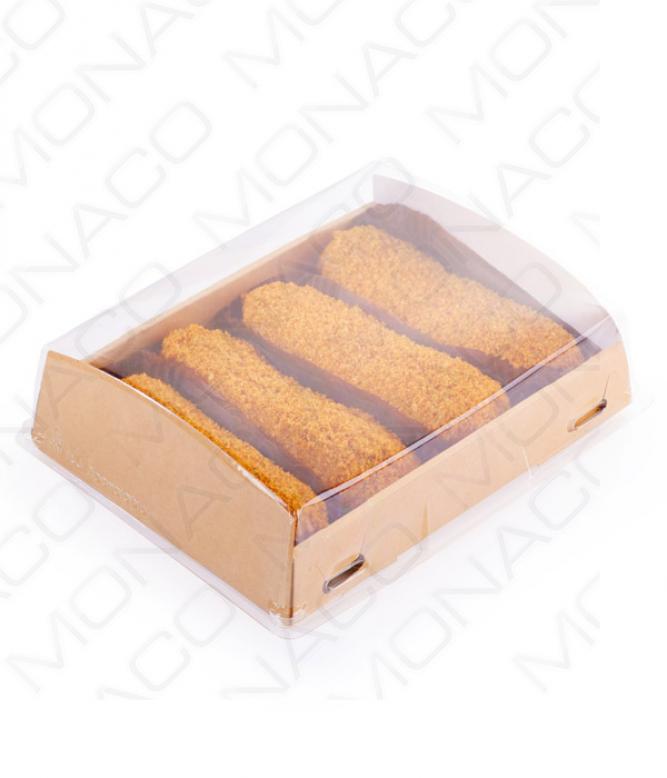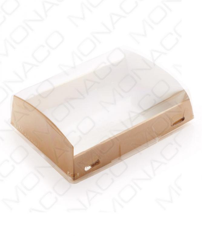 Víceúčelová krabička s průhledným PET víčkem. nejen na zákusky. Vhodná pro přímý kontakt s potravinou, je voděodolná a nepromastitelná. Design je je jednoduchý, elegantní a prezentuje se krásně na prodejním pultě a ve výloze. Ideální pro restaurace, cukrárny, kavárny a catering. Krabičky jsou vyrobené z kraftového papíru a jsou vhodné pro jakýkoliv druh pokrmu a mohou být použity do trouby i do mikrovlnky (bez víčka). Krabička je vyrobena z recyklovatelného materiálu, který ma za cíl snížít ekologickou zátěž obalů na pokrmy. Může být recyklovaná ihned po použítí.