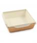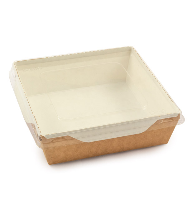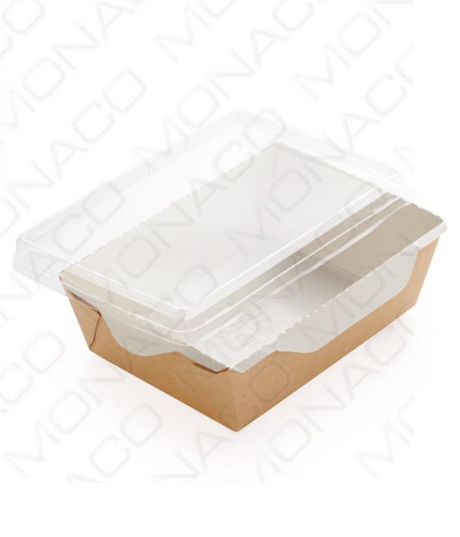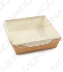 Krabička na jídlo s průhledným okénkem na víčku, která je voděodolná a nepromastitelná. Vhodná na elegantní prezentaci pokrmů. Ideální pro bary, kavárny, restaurace a catering. Krabičky jsou vyrobené z kraftového papíru a jsou vhodné do trouby i do mikrovlnky. Krabička na jídlo je vyrobena z recyklovatelného materiálu, který ma za cíl snížít ekologickou zátěž obalů na pokrmy. Může být recyklovaná ihned po použítí.