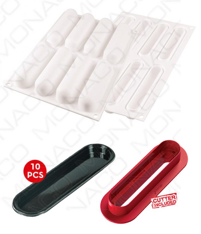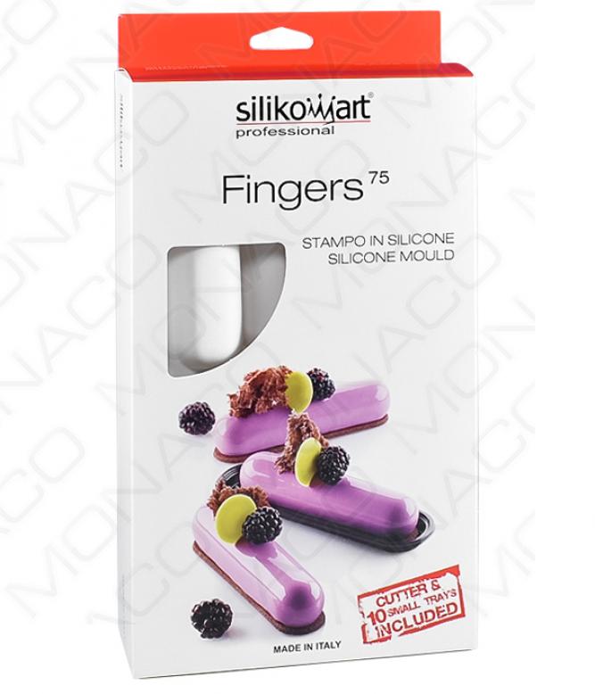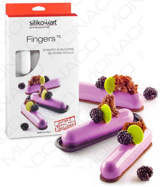 Profesionální silikonová forma ideální pro přípravu romantických jednoporcových dezertů ve tvaru prstu navržená Pastry Chefem Francois Galtier. Balení obsahuje také 10 černých tácků a vykrajovátko. Každá forma je opatřena inovativním, speciálním lemováním na vrchní části každého tvaru, které zajistí zakulacení základny výrobku. FINGERS75 lze použít k přípravě sladkých i slaných dezertů. Forma je odolná teplotě od -60°C do +230°C. Každé balení obsahuje plastové vykrajovátko, které poslouží k výrobě originálních vložek a/nebo základen, které bezvadně pasují s tvarem formy. Forma se dá použít v mikrovlnné troubě, snadnou údržbu zaručuje možnost mýt ji ručně nebo v myčce. Před použitím výrobek opláchněte ve vodě.