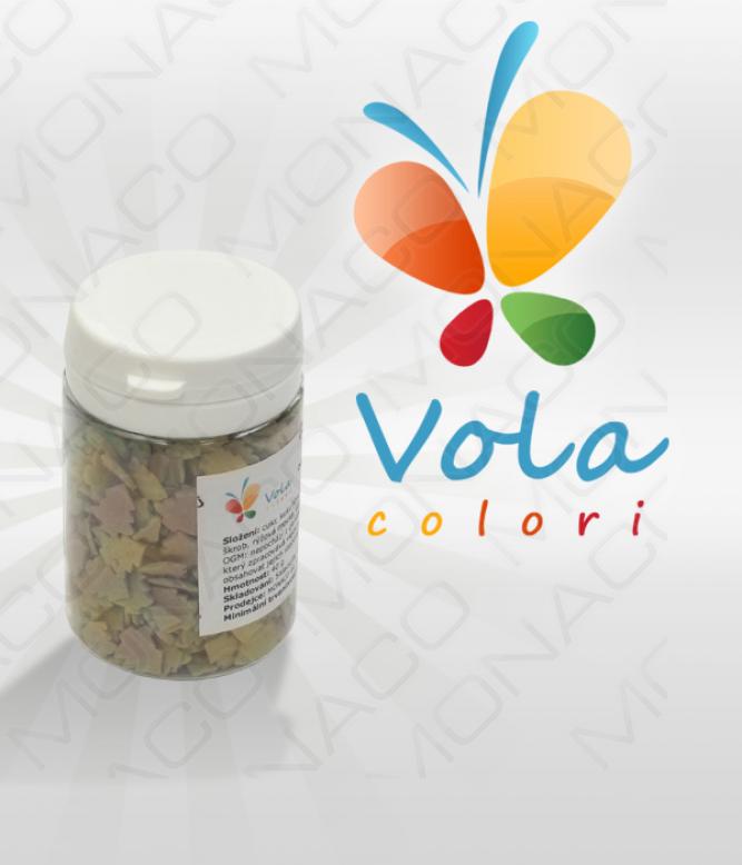 Složení: Cukr (76%), palmový olej, bramborový škrob, rýžová mouka – Invertin, potahová látka: E904, přírodní vanilkové aroma,barviva: E100, E133, E172, E555