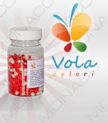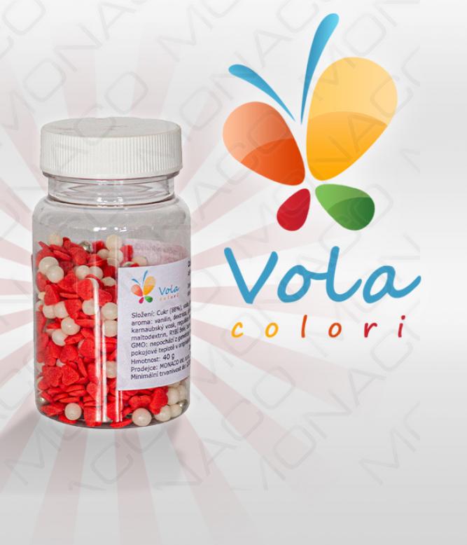 Cukrový mix červených srdíček, perleťových a stříbrných kuliček. Používá se na dekoraci dortů a zmrzlinových pohárů.