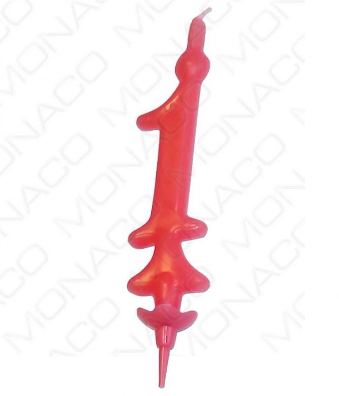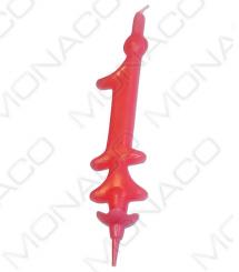 Svíčka se stojánkem číslice 1 v.11cm červená 1 ks/sáček
