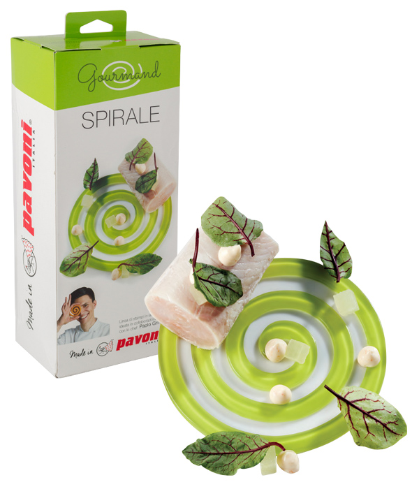Speciální, profesionální silikonová forma ve tvaru spirály, navržena ve spolupráci s šéfkuchařem Paolem Griffou.Je vhodná k dokonalé cukrářské tvorbě, i na zamražování. Formu lze použít ve sladké i slané kuchyni, v troubě, šokeru, mikrovlnné troubě, v rozsahu teplot od -40°C do +280°C. Lze ji mýt ručně nebo v myčce na nádobí.