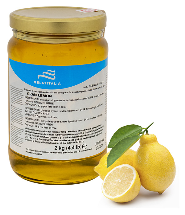 Citronová ochucovací pasta určena k výrobě zmrzliny a na ochucování cukrářských výrobků. Složení: glukózový sirup, voda, zahušťovadlo E414, aroma, výtažek ze světlice barvířské.
