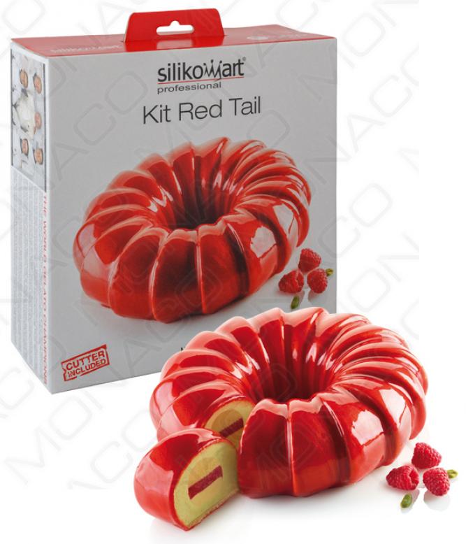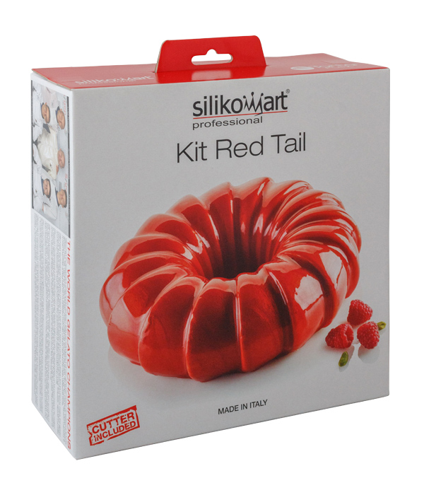 Sada Red tail se skládá ze tří částí: silikonové formy pro výrobu základny o objemu 2000 ml, silikonové formy na vytvoření vložky pro dosažení jedinečného efektu na řezu dezertu a oboustranného plastového vykrajovátka na tvoření piškotových a křehkých základen nebo originálních vložek. Díky teplotně odolnému materiálu mohou být formy, kromě vykrajovátka, použity v troubách, šokerech, mikrovlnných troubách. Sadu lze mýt ručně nebo v myčce na nádobí. Před použitím výrobek opláchněte ve vodě.