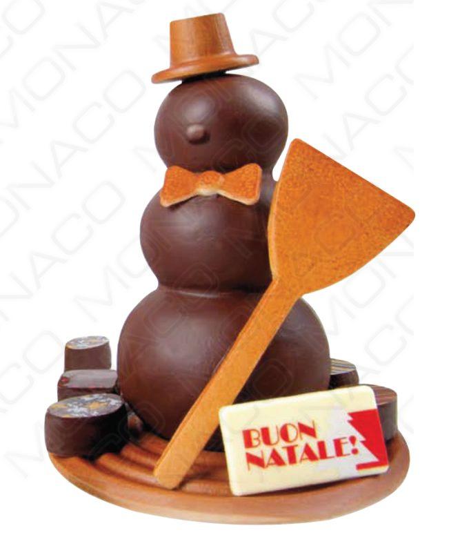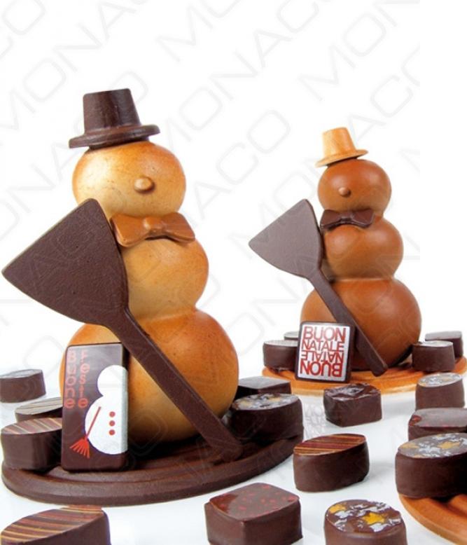 obr. 1. Formu sněhuláka naplňte rozpuštěnou pravou čokoládou nebo čokoládovou polevou. (viz. Čokolády a čokoládové polevy)
