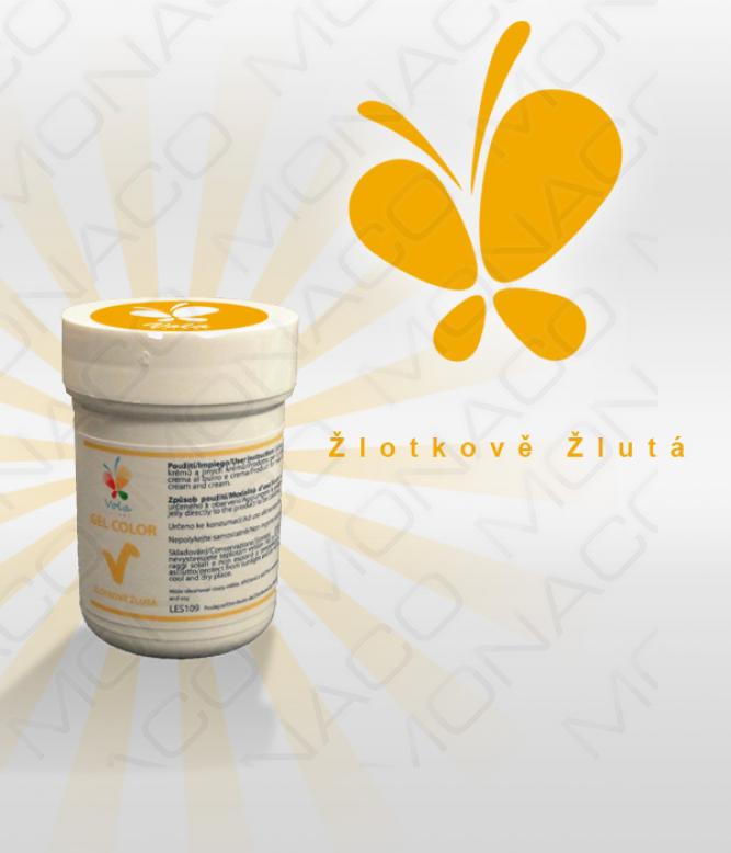 Potravinářská žloutkově žlutá barva ve formě gelu. Různé barvy je možné smíchat a vytvořit tak nové odstíny.