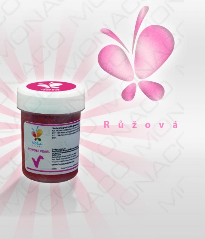 Barevný prach perleťově růžový se používá na zdobení čokolád, krémů, šlehaček, cukrových a modelovacích hmot, marcipánu, másla a semifreddi. Dodává vašim výrobkům perleťový efekt a zářivý lesk.