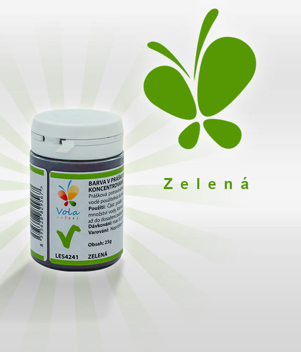 Prášková potravinářská barva rozpustná ve vodě použitelná do těst, krémů a jiné.
