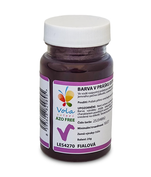 Prášková potravinářská barva rozpustná ve vodě určená pro dekoraci potravin, zejména cukrovinek a jemného pečiva (zákusků, sušenek, dortů a oplatek). Bez AZO barviv.
