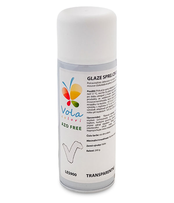 Potravinářská dekorace ve spreji. Používá se pro glazování mousse (čokoládové pěny) a semifred.