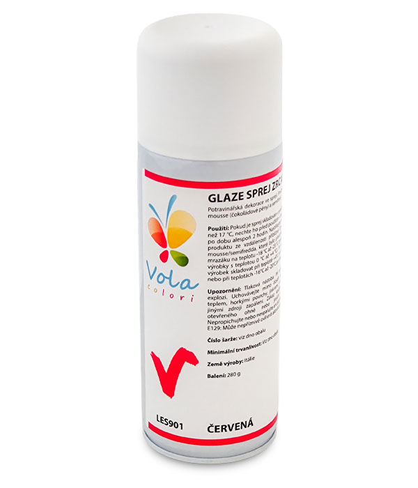 Potravinářská dekorace ve spreji. Používá se pro glazování mousse (čokoládové pěny) a semifred.