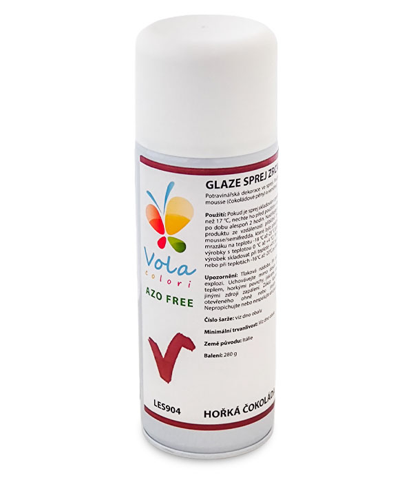 Potravinářská dekorace ve spreji. Používá se pro glazování mousse (čokoládové pěny) a semifred.