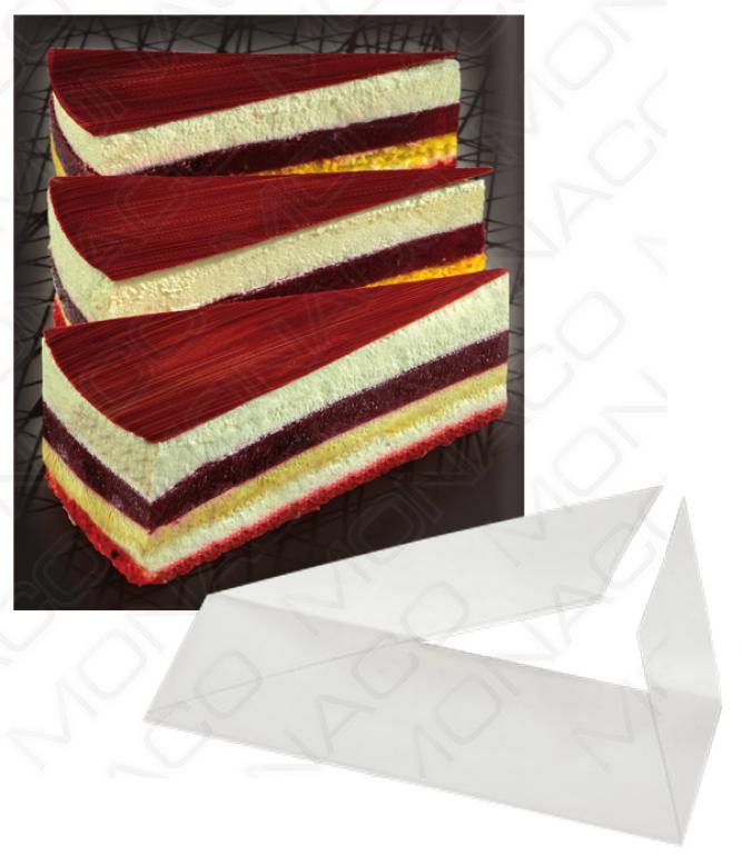 Trojúhelníková páska z mléčného acetátu slouží k ochraně obvodové části dortových řezů vyrobených s pomocí forem MONOP. série.