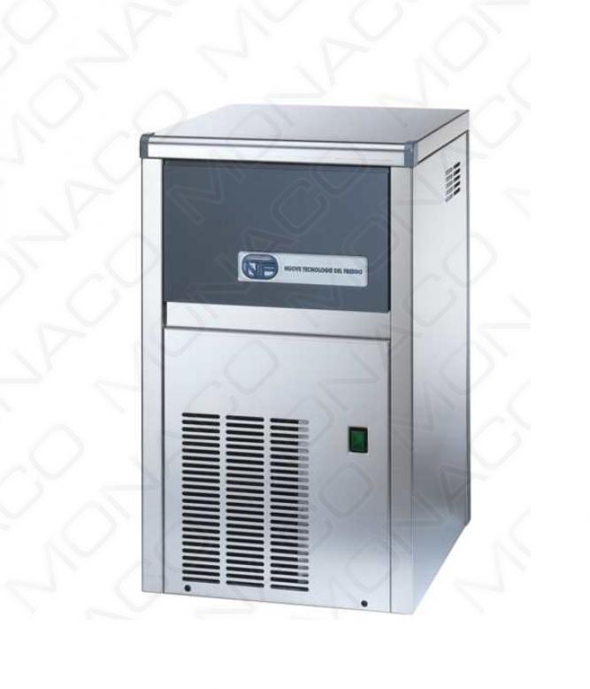 Výrobník ledu v celonerezovém provedení s dvířky z plastu ABS.
