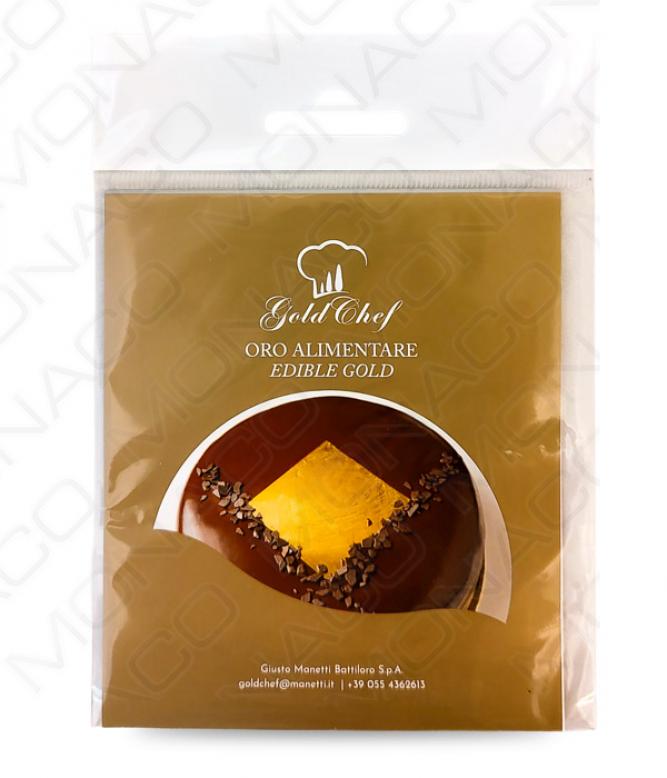 Plátek jedlého zlata 22 karátů o velikosti 80 x 80 mm. Vhodné k přímému použití jako dekorace cukrářských a pekařských výrobků.