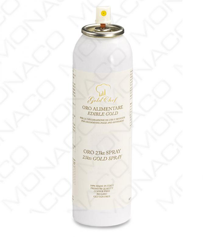 Jedlé zlato (23 karátů) ve spreji – bez mědi (E175). Obsahuje 200 mg páškového zlata. K dekoraci slavnostních čokoládových a cukrářských výrobků, nebo pokrmů přímo na místě v gastronomii.