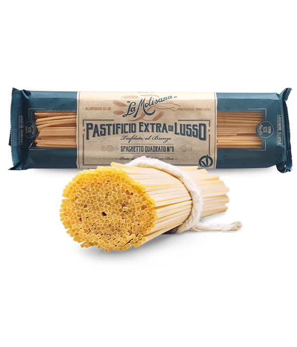 Spaghetto Quadrato má čtvercový průřez místo tradičního kulatého. Tento tvar zajišťuje lepší zachycení omáček, protože čtvercový profil poskytuje větší povrchovou plochu pro omáčku, aby se lepila. Díky čtvercovému tvaru jsou tyto těstoviny často pevnější a méně náchylné k rozvaření než tradiční kulaté špagety. To zajišťuje, že si zachovají svou strukturu i po delším vaření. Čtvercový tvar je inovativní oproti tradičním kulatým špagetám a nabízí novou dimenzi pro kombinaci s omáčkami. Tento tvar může být zajímavou volbou pro ty, kteří chtějí vyzkoušet něco nového v italské kuchyni. Spaghetto Quadrato se dobře hodí k hustším omáčkám, jako jsou ty z masa nebo zeleniny, protože čtvercový tvar umožňuje lepší zachycení těchto omáček.