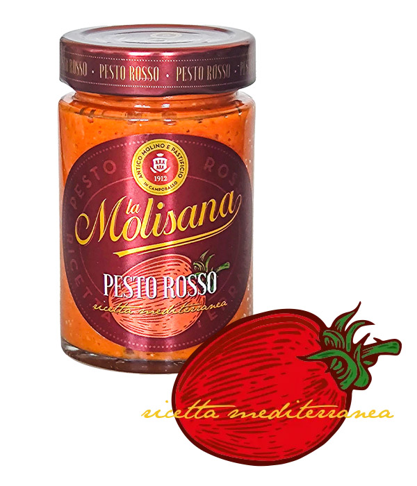 Rajčatové Pesto Rosso od La Molisana je aromatická omáčka plná textury a charakteru. Pouze ta nejjemnější rajčatová dužina smíchaná s jemnou šťávou vytváří dokonalou rovnováhu v kombinaci s kešu oříšky, sýrem Grana Padano DOP a kapkou balzamikového octu IGP z Modeny. Konečným výsledkem je toto intenzivní červené pesto plné chuti, které si můžete vychutnat na těstovinách nebo rychlé svačince, jako toasty nebo sendviče, a také se skvěle hodí k pečené zelenině, grilovanému masu a mořským plodům.