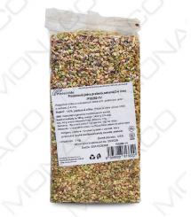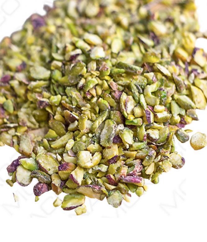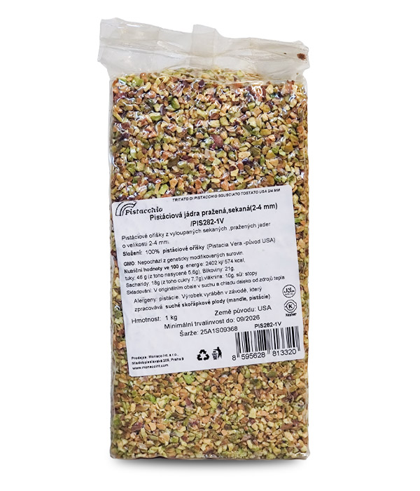 Výrobek získaný z vyloupaných, sekaných a pražených pistácií (původ USA).