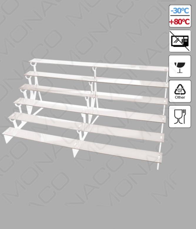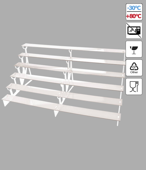 Šestipatrový plastový stojan na prezentaci výrobků. Stojan je kompletně rozmontovatelný.