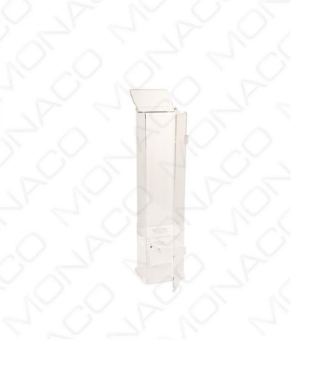 Stolní zásobník na zmrzlinové kornouty z čirého plexiskla, s jedním otvorem na kornouty. Zboží pochází z předváděcí akce, je lehce poškrábané.