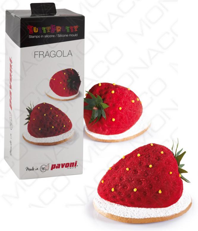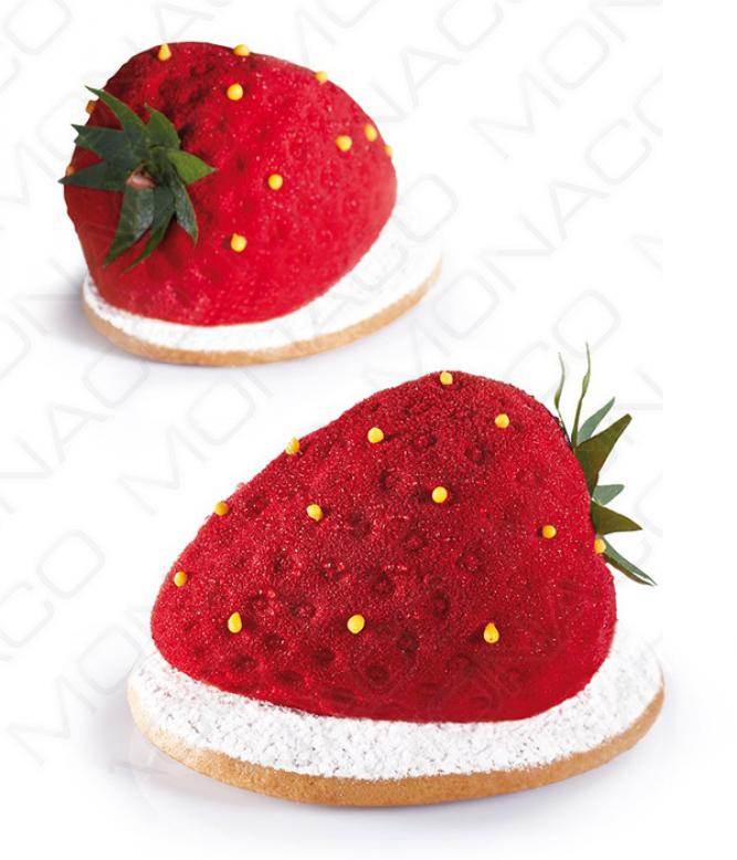 Pružná silikonová forma na výrobu dortíků ve tvaru jahody ze série Tuttifrutti od cukrářského mistra světa 2015, Emmanuele Forcone.