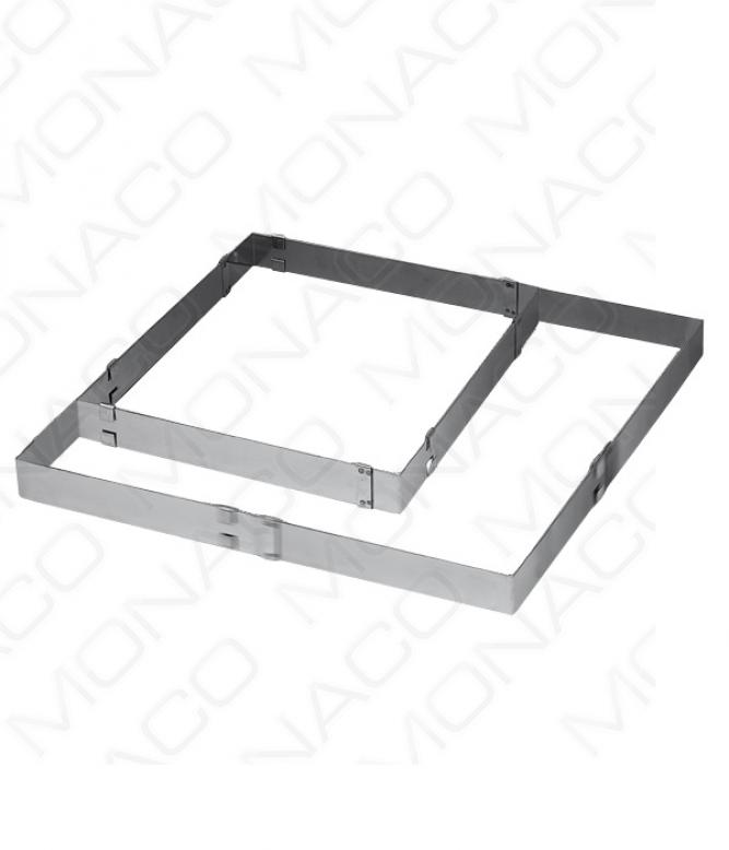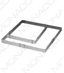 Nerezový dortový ráfek ve tvaru obdélníku s nastavitelnými rozměry.