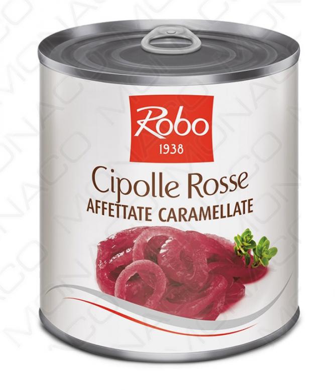 Zkaramelizovaná červená cibule nakrájená na kroužky. Ideální na hamburgery, panini a gourmet pizzy. Hodí se jako příloha k masovým a rybným pokrmům, a skvěle chutná se sýrem.